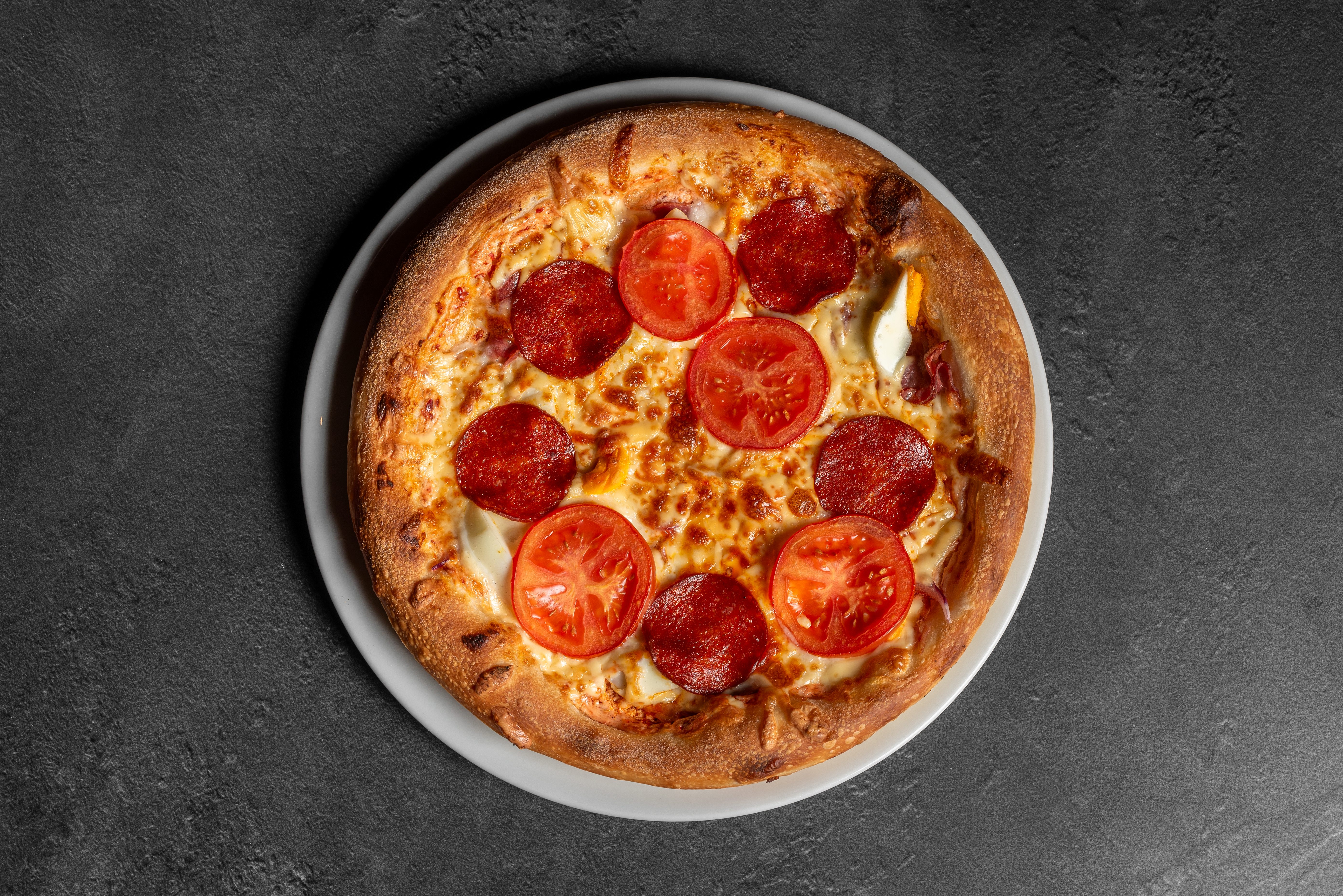 Szalámis (paradicsomos alap, paprikás szalámi, csemege szalámi, sajt)