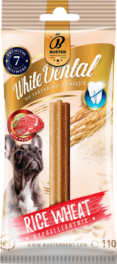 A Buster Dental Sticks - Hypoallergenic receptjét az élelmiszermérnökök, állatorvosok és háziállat-fogászati szakemberek gondosan fejlesztették ki, és célja az allergiás tünetek leküzdésének elősegítése, alacsony kalóriatartalmú, ezért alkalmas elhízásos problémákkal küzdő kutyák számára, és nyugtató hatással van a gyomorra. Mindezeket a pozitív előnyöket hozzáadták annak biztosításához, hogy kutyusa hosszú távon egészséges maradjon.